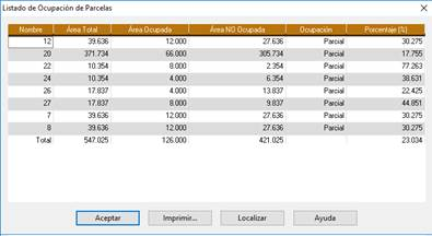 Una vez realizado el cálculo, se presenta un listado con las parcelas afectadas: