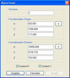 En ella se debe establecer el nombre del par, las coordenadas X, Y, Z de los puntos origen y destino y el control H y V.