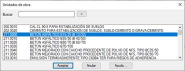 Al seleccionar la opción de Insertar o Editar nos aparecerá una diálogo como el que se muestra a continuación en el cual seleccionaremos la unidad de obra a asignar.