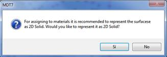 This command allows one to consult or modify the information about a surface’s triangle types. Firstly, a message appears enabling us to select the type of surface representation, 2D solids or polylines; we recommend working with 2D solids in order to take full advantage of the different colors of the materials.