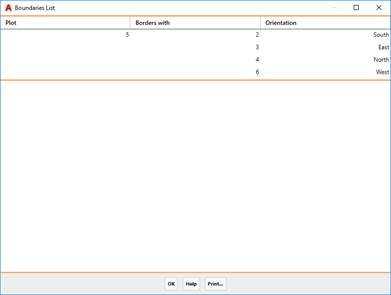 This shows information about the orientation of the plot with respect to those it borders on the four cardinal points.