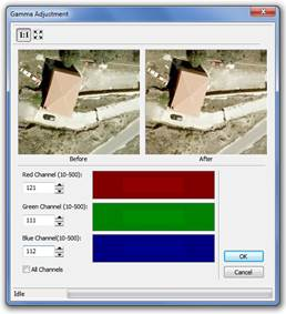 Red Channel: to indicate the gamma value for the red channel, it may fluctuate between 10 and 500 and the value 150 is equivalent to the original gamma level of the image.
