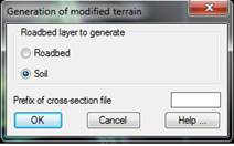 On one side the user selects whether to generate the roadbed or the soil and also the prefix of the cross-section file. The command will generate a cross-section file for each segment found in the folder. These files will take the name of the corresponding segment using the text introduced in the corresponding field as a prefix.