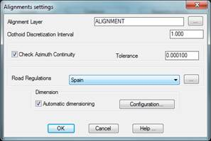 The superelevation associated with an alignment is generated using this command. The program initially requests the alignment from which the superelevation is meant to be generated. Then it displays the following dialog box to set its characteristics.