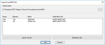Elements to Convert: A list will appear with the different elements that make up the selected LandXML file. In this list you can select multiple components that you want to convert.