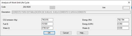 Management of the database related to the Life Cycle Analysis. This database will be directly related to the aforementioned BC3 database, enabling us to assign Management of the database related to the Life Cycle Analysis. This database will be directly related to the BC3 database and commented on in the previous section, enabling us to assign each BC3 code or work unit the corresponding unit of consumption.