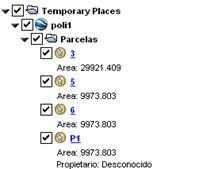 The elements created with the commands Utilities > Plots are exported individually. Each one of these is individually listed on the left-hand panel of Google Earth, in the folder Plot, including associated details on the Area, and whether an Owner or Reference exist.