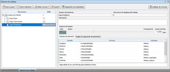 Click on the Element catalogue button and define groups and elements in accordance with how you wish to perform the measurement, for example:
