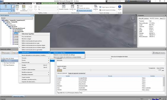 For each item to be measured, first select the catalogue item in the quantification book, followed by the corresponding object in the measurement tree. Then click on the right menu button and execute the Quantification > Measure to <element> option, where <element> is the name of the catalogue element.