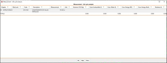 Once the dialogue box has been checked, the list with the estimate for both each works unit and the total will be displayed.