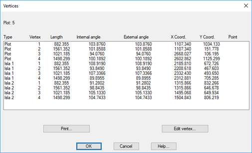 With this option you can see the information of all vertices of the plots, as well as vertices of the islands that it contains.