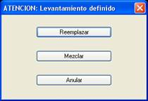 Si ya está definido un levantamiento en el dibujo actual, el programa pregunta si deseamos reemplazar los datos anteriores o deseamos mezclar ambos trabajos, con objeto de unificarlos en un solo fichero.