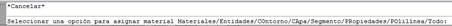 Opción Materiales: muestra un diálogo dónde se podrán seleccionar los distintos materiales y realizar distintas operaciones.