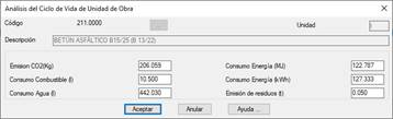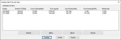 Gestión de la base de datos relativa al Análisis del Ciclo de Vida, Esta base de datos va a estar directamente relacionada con la base de datos BC3 y comentada en el apartado anterior, de forma que, es posible asignar para cada código o unidad de obra BC3 la correspondiente unidad de consumo.