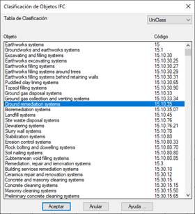 Este comando nos va a permitir gestionar los ficheros de clasificaciones. Estas clasificaciones nos van a servir para clasificar cada uno de los elementos a exportar a IFC.