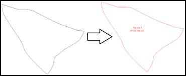 La nueva parcela se dibujará en su capa correspondiente según los parámetros de configuración establecidos y se rotulará el nombre y área de la misma.