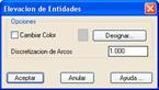 Opciones: Se muestra un diálogo en el que se pueden especificar los parámetros que afectan a todos los modos anteriores. Si se activa la opción Cambiar Color, cada entidad que se modifique con la ejecución del comando se cambia de color, asignándole el que aparece a la derecha de la casilla. Esto resulta útil para modificar dibujos grandes, de forma que se diferencien las entidades ya procesadas. Por otra parte, la casilla Discretización de Arcos indica el valor de discretizado de los arcos y segmentos de arco de las polilíneas 3D que sean elevadas.
