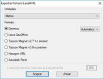 Por el contrario, si en la configuración del programa especificamos unas unidades, la conversión a LandXML asume que los ficheros origen están en esas unidades, y realiza la conversión necesaria para que el fichero LandXML resultante sea consistente.