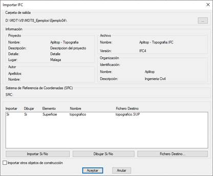 Una vez aceptado el diálogo se procederá a la importación y dibujo de los elementos si procede.