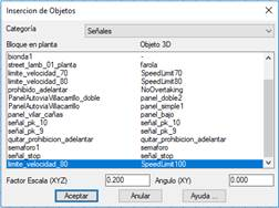 El programa permite especificar el FactorEscala o factor multiplicador del bloque seleccionado, en las tres dimensiones (XYZ), así como el Ángulo con respecto al plano XY.