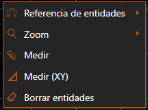 Las operaciones de medición y borrar entidades son las mismas del Menú Medición y Borrado de la barra de herramientas.