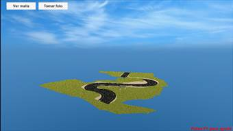 Dentro de las opciones de este modo está el botón Ver malla, que permite ver el modelo alámbrico del terreno, y el botón Tomar foto, que permite hacer una captura de pantalla y guardarla con el nombre que elijamos.