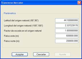 La latitud y longitud se deben especificar en grados decimales y el Este en el falso origen y Norte en el falso origen en metros.