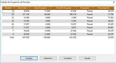 Una vez realizado el cálculo, se presenta un listado con las parcelas afectadas: