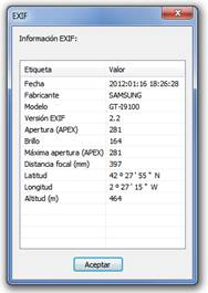 Este comando muestra sí existe la información EXIF que contiene la imagen seleccionada.