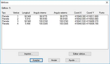 Con esta opción nos aparecerá la información de todos los vértices del edificio.