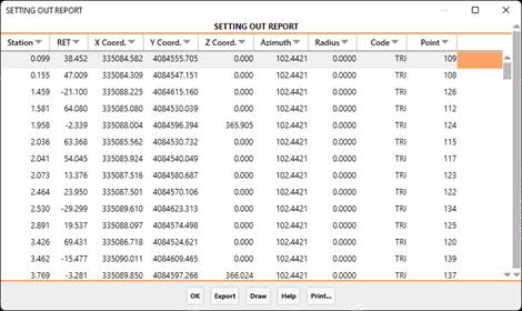 Once the points entering process is complete, we press <Enter> and the points calculation window will appear in the ground plan with the previous data listed.