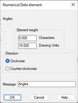 Message: Text that will appear as the element’s title on the numerical data drawing.