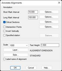 Label name of alignment. This option will label the name of the alignment near the alignment’s origin.