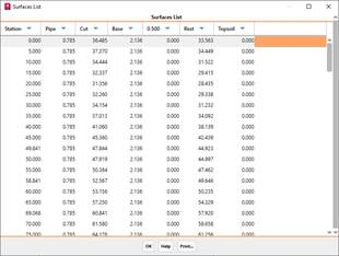 This option will allow us to obtain a list of surfaces in elevation of the section of the pipe with each of the materials defined, in addition to the total cut surface.