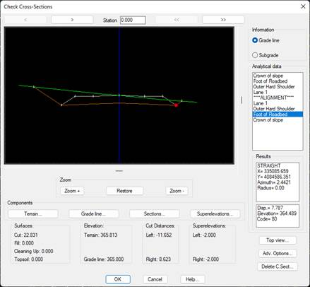 When this command is executed, the program will request a segment and the section will be viewed in a graphic window on elevation plan view. For more details see the section