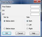 A Clearing Berm is a vector with a determined slope found before a ditch, meaning after the platform, or before the slope inclination. The two types are illustrated in the images below within the red circles.