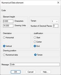 Message: Text that will appear as the element’s title on the numerical data drawing.