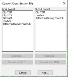 This command enables us to import and export cross-section files from other programs. On executing the command, a dialogue box will appear with all the available formats.