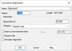 Export to file: If this option is enabled, the program will request the file in which the horizontal alignment is to be saved once the dialog box has been validated.
