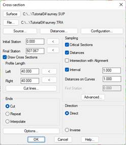 File: The cross-section information will be saved by default in a file with the name of the drawing and a .TRA extension. This name can be changed by clicking on the relevant button and selecting the file desired.