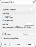 Finally, there is the option of establishing the mesh created as the Current surface provided that the mesh file type is binary.