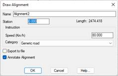 Once the first section of the alignment has been defined, a window appears in which the data entered can be checked. This window will be shown every time an alignment section is entered, unless they Do not show this window box is enabled.