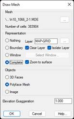 This command allows one to represent a mesh file obtained by using the Meshes > Create Mesh from Surface or Meshes > Create Mesh from Contour Lines tools. First, the program requests a mesh file (ASCII or binary). The following dialog box is then displayed: