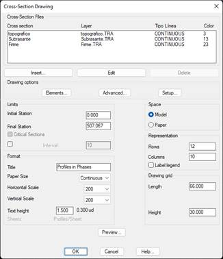 A detailed description of this dialog box can be found in the Cross-Sections > Draw Cross-Sections command.