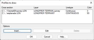 Once selected, the usual drawing dialogue box will appear, previously connected to the Draw Simple Profile command, with the difference being that if you select Additional terrains, you will see the selected files as well as their drawing configuration.