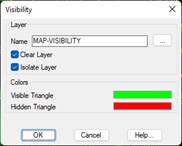 This command allows one to identify the areas of a surface which are visible from a specific point. Firstly, the program requests a point from which to perform the process, along with the observer’s height. Then a dialog box is displayed allowing one to configure the layer and the colors to be used.
