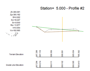 Elevations on Profile: Displays heights on the terrain line at each of the points defining the cross-section.