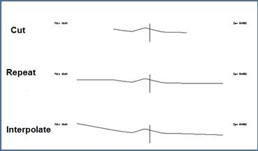 Interpolate. This option is used in order to complete the strip proposed when there is insufficient terrain in the strip width specified, the slope outside the working area is known and has similar gradients as those at the end of the profile.  The program will interpolate using the slope of the last vectors cut until the height is raised to the profile’s final length at the right and left sides.