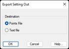 Points file: All the coordinates of all the points on the list are exported to a points file. When the dialog box is validated, the Export Points command is automatically executed. For further details, see the Surveying Points section.