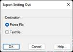 Points file: All the coordinates of all the points on the list are exported to a points file. When the dialog box is validated, the Export Points command is automatically executed. For further details, see the Points section.